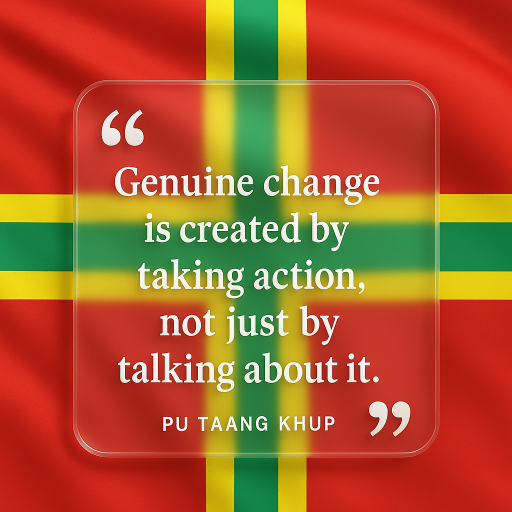 We are living in a moment where hesitation carries a cost, and courage carries hope. Pu Taang Khup’s words echo across this moment, urging us not to stand on the sidelines but to step into responsibility—to lead with conviction, to act with purpose, and to trust in the strength of our people.