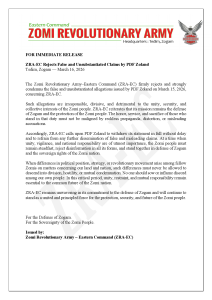 FOR IMMEDIATE RELEASE ZRA-EC Rejects False and Unsubstantiated Claims by PDF ZolandTedim, Zogam — March 16, 2026 The Zomi Revolutionary Army–Eastern Command (ZRA-EC) firmly rejects and strongly condemns the false […]