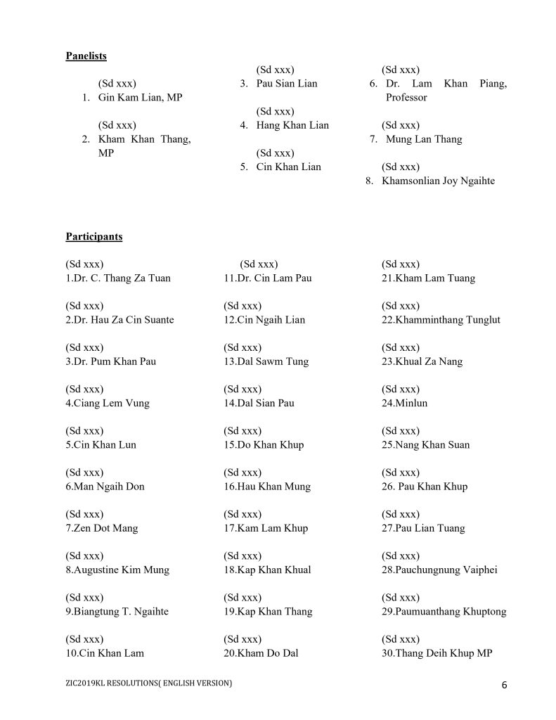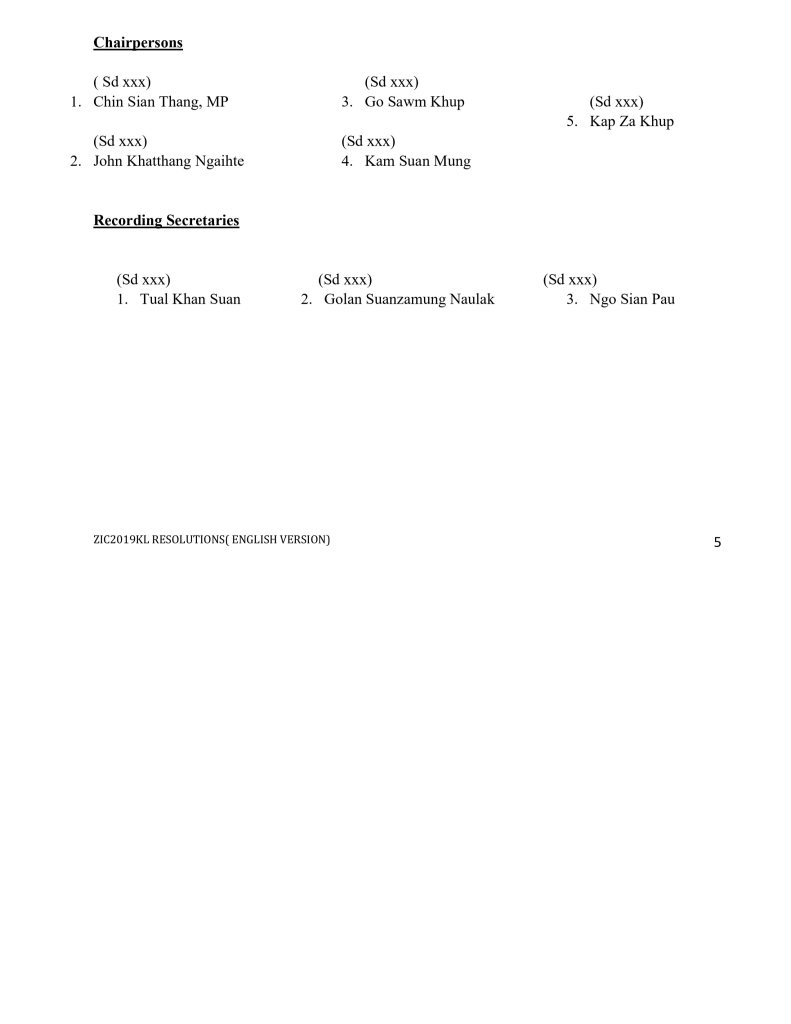 Members of various Zomi political leaders, political party, organizations, student groups, women groups, The Zomi International Conference 2019 Kuala Lumpur hereby moves the following;