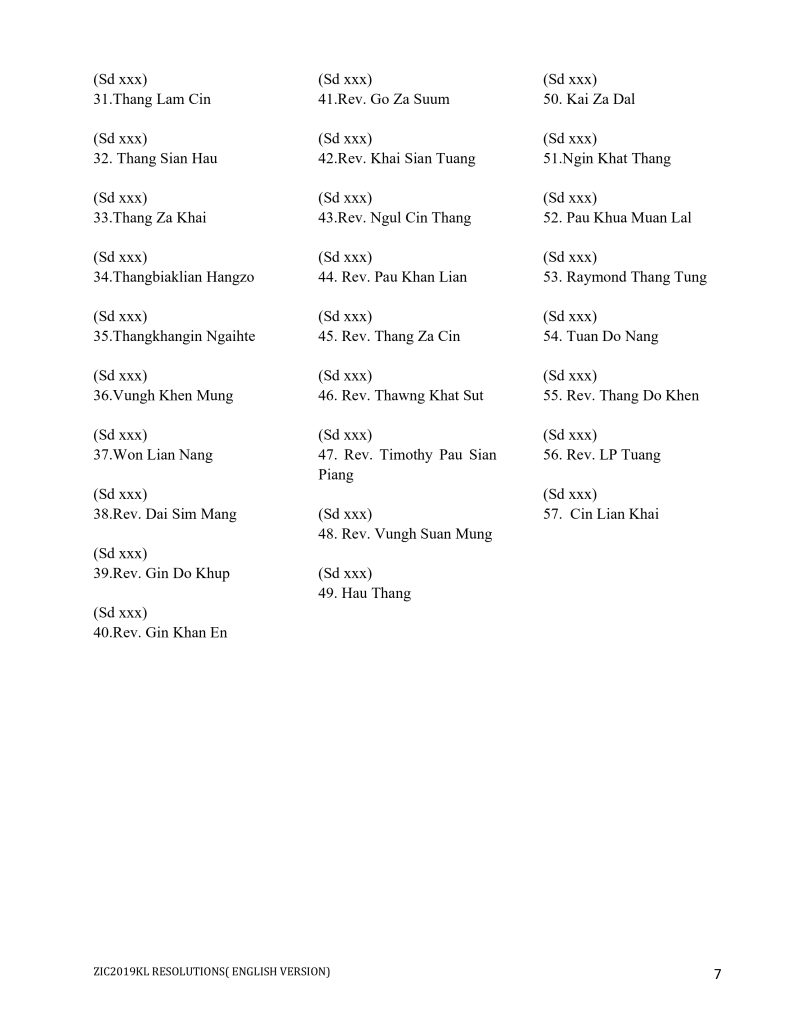 - Convener     : Pu Go Sawm Khup, Zomi Innkuan USA