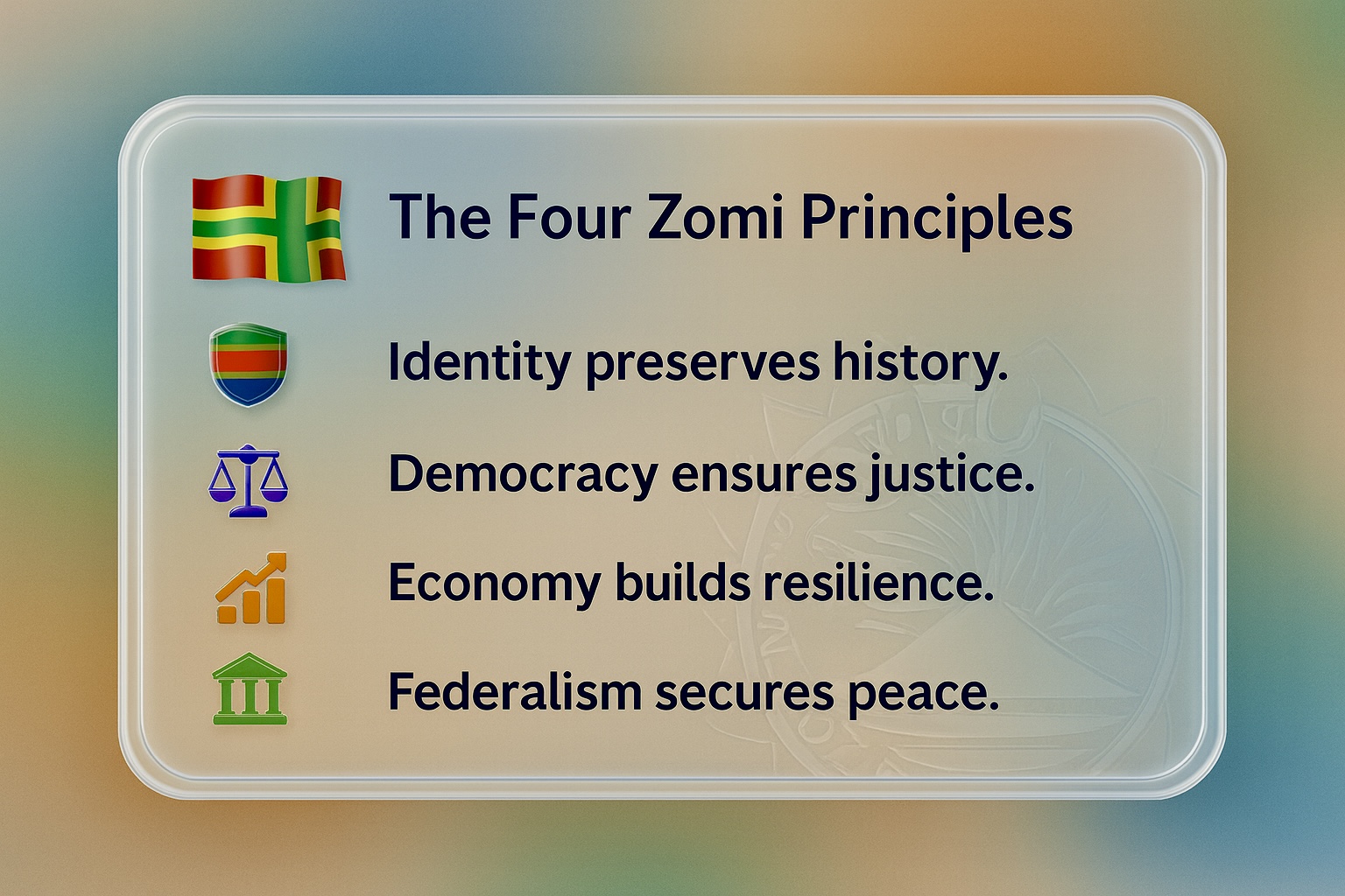 As the Zomi people continue their journey toward self-determination, the Four Principles serve not merely as historical slogans but as living instruments of national renewal. They illuminate a path where political wisdom, moral leadership, and community development converge.